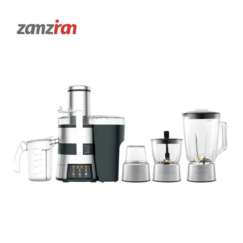 آبمیوه گیری برقی 4 کاره دیجیتال صفحه لمسی دلمونتی مدل DL710 یکی از محصولات حرفه ای و پرفروش برند معتبر دلمونتی است که با طراحی مدرن، عملکرد چندمنظوره و کیفیت ساخت بالا، گزینه ای ایده آل برای آشپزخانه های امروزی محسوب می شود که در فروشگاه اینترنتی لوازم خانگی زمزیران با قیمت مناسب عرضه می شود. این دستگاه با توان مصرفی 1000 وات و برخورداری از چهار عملکرد کاربردی شامل آبمیوه گیری، مخلوط کن، خردکن و آسیاب، نیاز کاربران را به چند دستگاه مجزا برطرف می کند. طراحی دیجیتال و صفحه لمسی پیشرفته، استفاده از دستگاه را بسیار ساده و دقیق کرده و بدنه استیل ضد زنگ آن علاوه بر زیبایی، دوام بالایی را تضمین می کند. آبمیوه گیری چهارکاره دلمونتی 710 برای خانواده هایی طراحی شده که به کیفیت، سرعت و تنوع عملکرد اهمیت می دهند و به دنبال یک دستگاه همه کاره و قابل اعتماد هستند. در ادامه با ما باشید که به مشخصات و قیمت خرید آبمیوه گیری 4 کاره دلمونتی 710 در فروشگاه زمزیران می پردازیم.