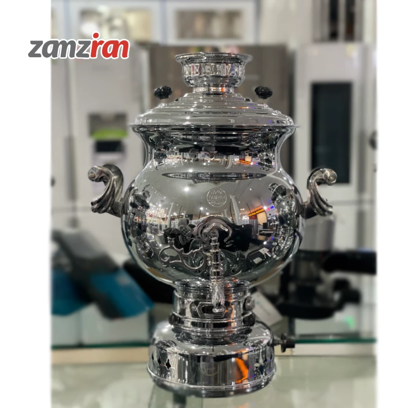 رنگ استیل و درخشش بدنه، حس حرفه ای بودن را القا می کند و به راحتی با دکوراسیون سنتی یا مدرن هماهنگ می شود. چه در آشپزخانه ی خانه باشید، چه در حیاط یک مراسم خانوادگی یا حتی در یک محیط کاری، این سماور با ظاهر شیک و رسمی اش جلوه ای خاص ایجاد می کند.