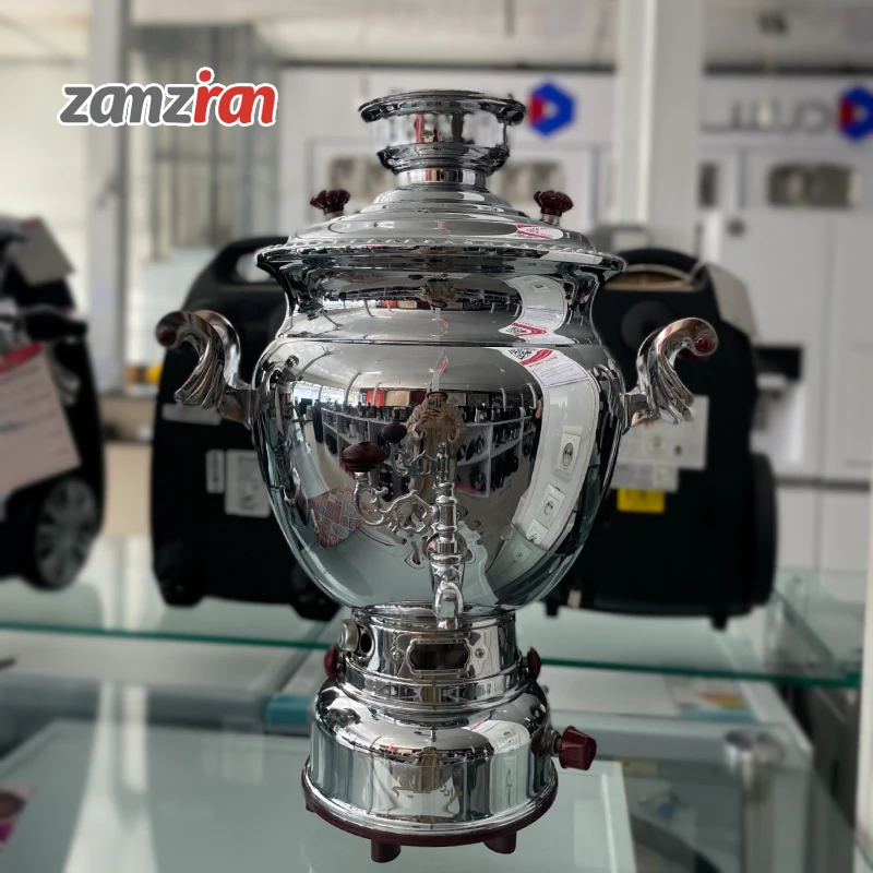 بدنه ی این سماور از برنج خالص ساخته شده و با پوشش نیکل _کروم صیقلی و براق، هم در برابر حرارت مقاوم است و هم ظاهر زیبایی به آشپزخانه یا محل کار شما می بخشد. دسته ها و پایه های آن نیز از برنج و باکالیت نسوز طراحی شده اند تا هم دوام بالایی داشته باشند و هم در برابر گرما دچار تغییر شکل نشوند.